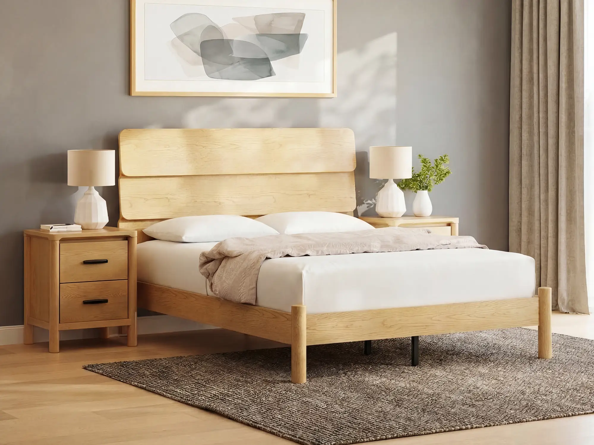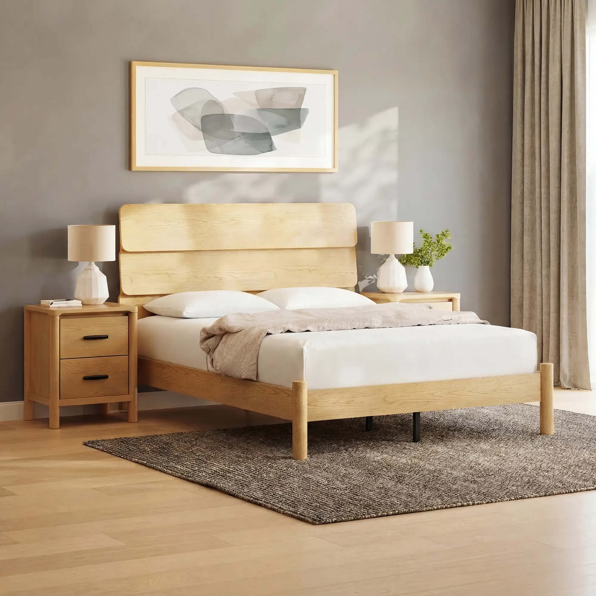 The Lumea Platform Bed Frame brings natural comfort to your bedroom with its contemporary design, three-tiered headboard, and light oak finish. Complete the look with the Lumea Bedroom Set.